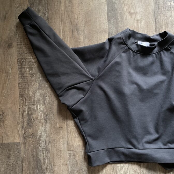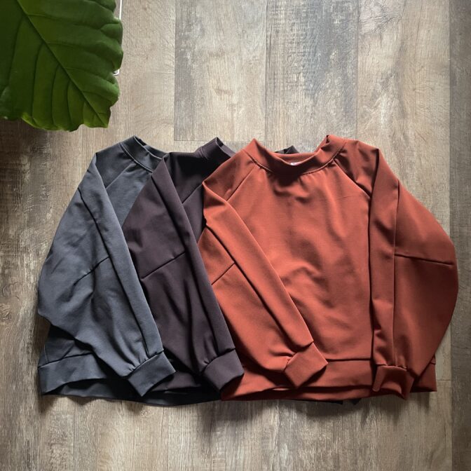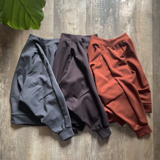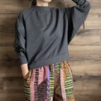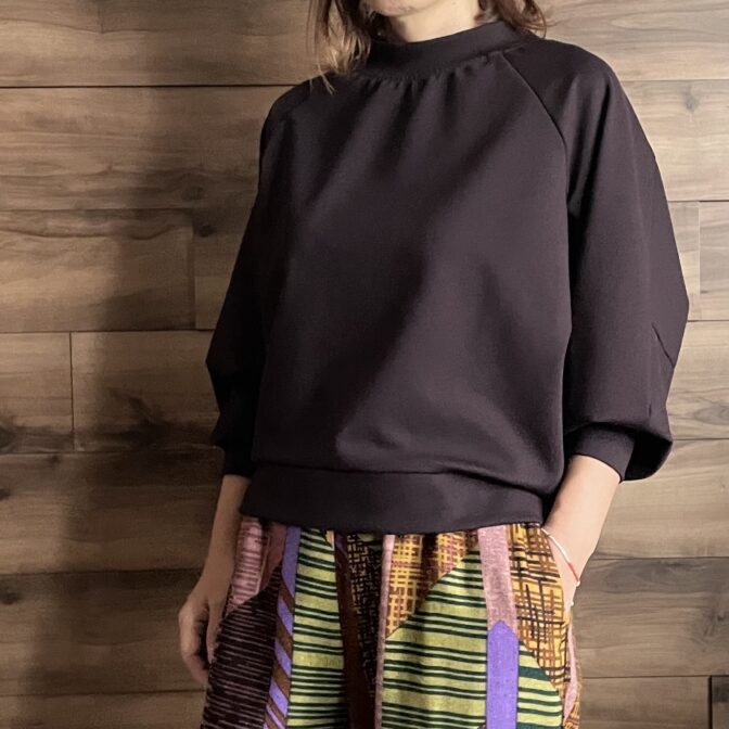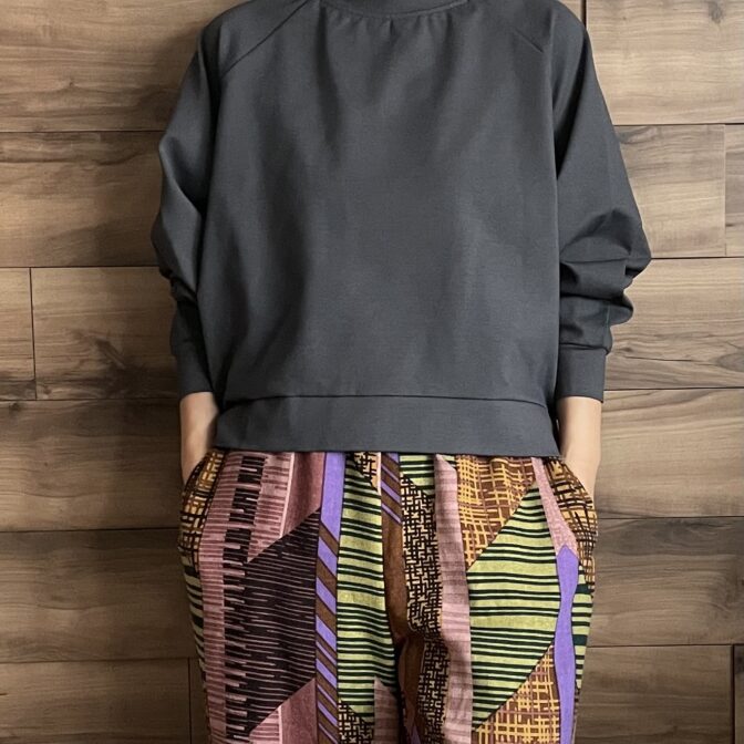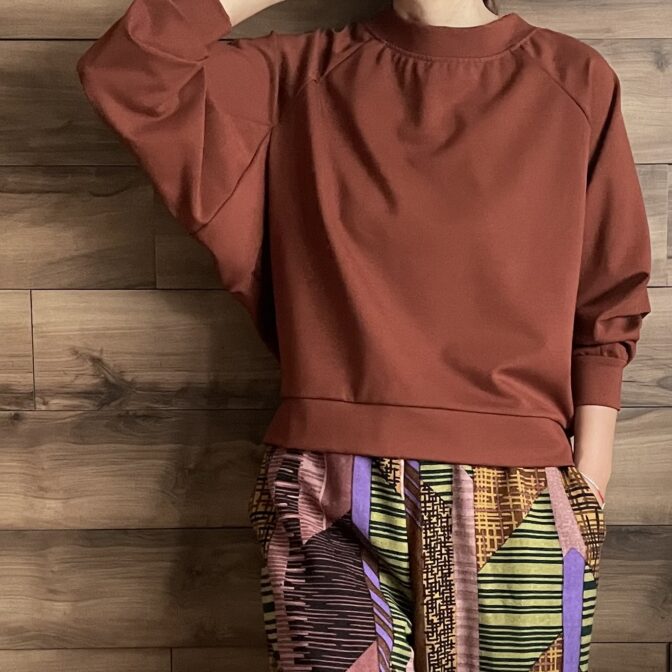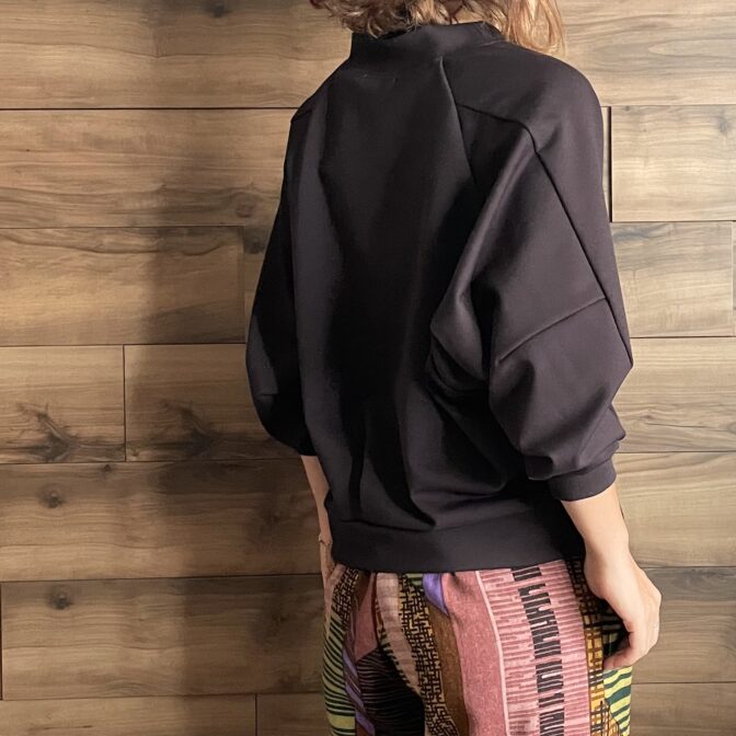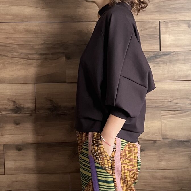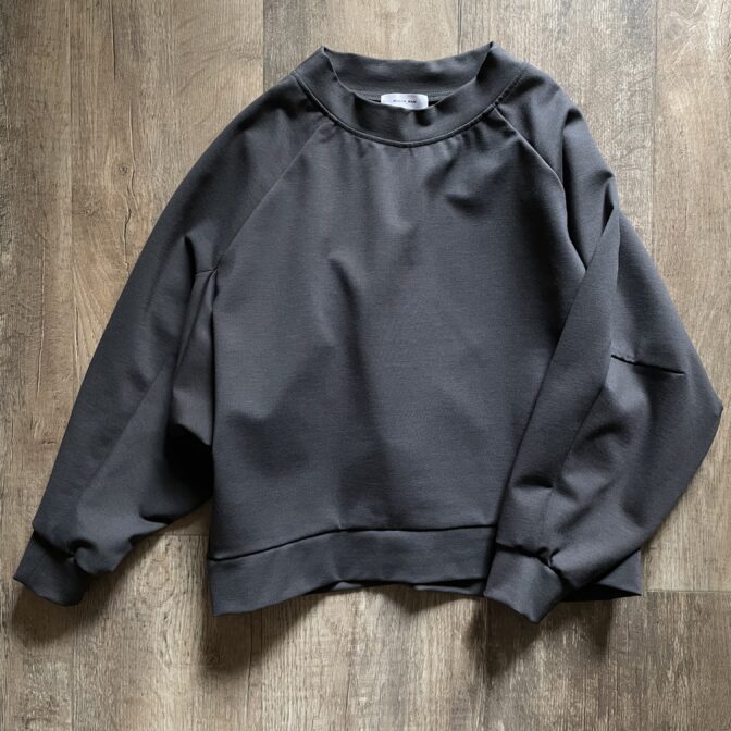 身体のラインが出ない、ゆったりとしたふくらみのあるプルオーバー。