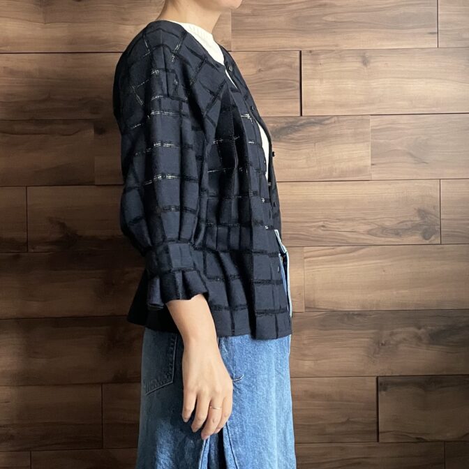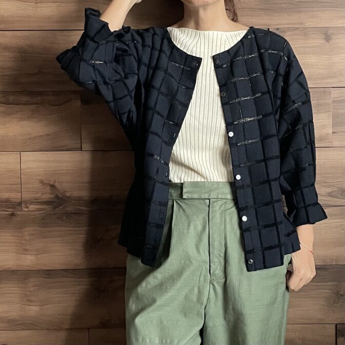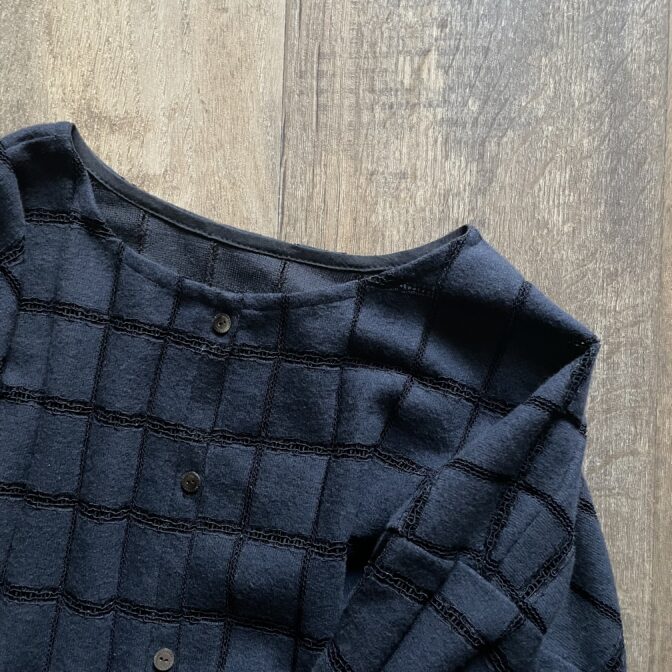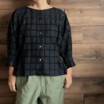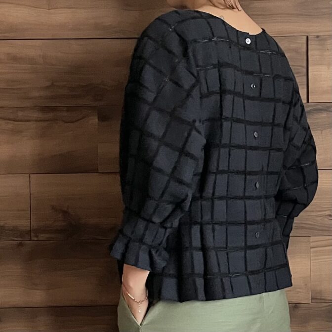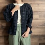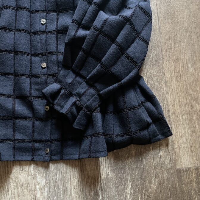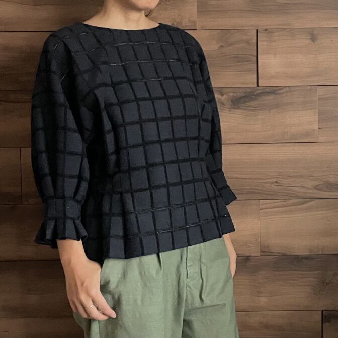 【前後で着れる2wayブラウス】ブロックチェックの起毛レース/コードラッセルレース