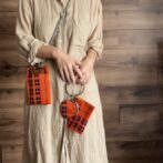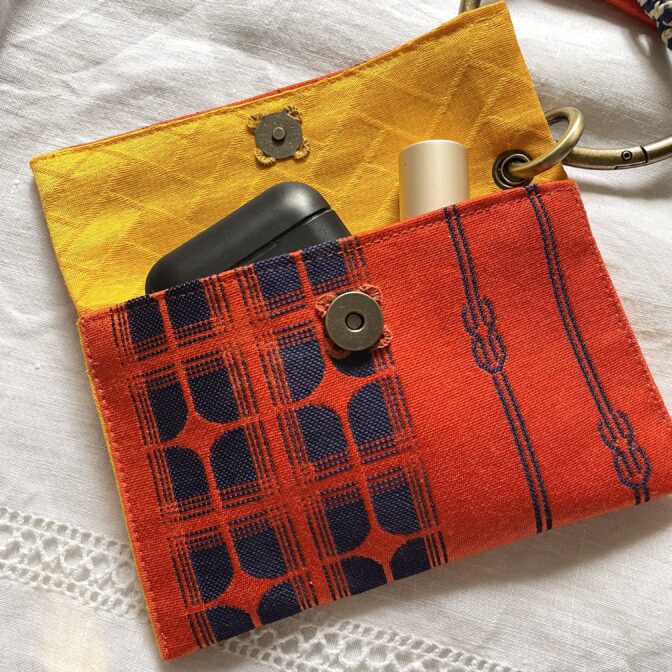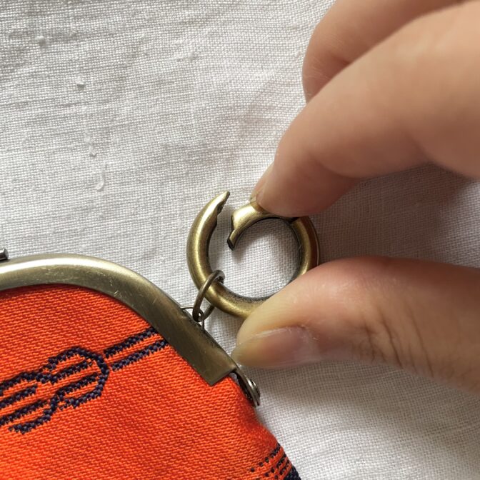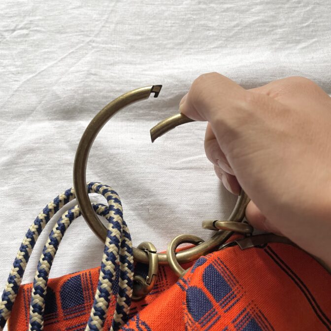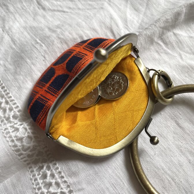 着物の半帯をリメイクして作ったマルチリングショルダーバッグ。