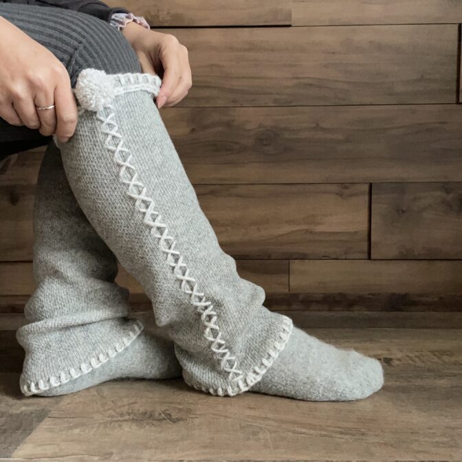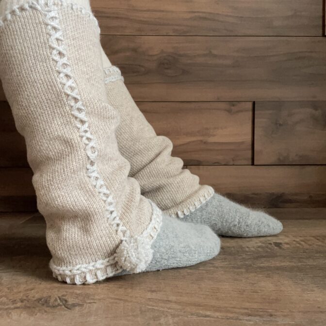 ウール素材の女の子らしいあったかレッグウォーマー♡かぎ針トリミング