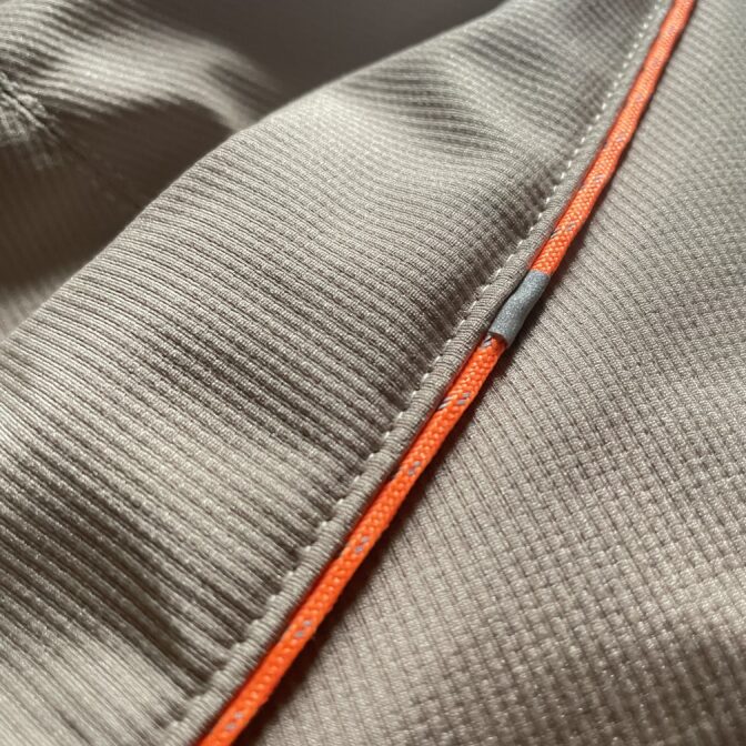 ネオンカラーの蛍光反射テープを挟み込んだ、