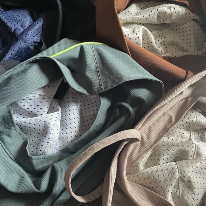 ポリエステル素材で裏地にはメッシュ生地を使用しており、