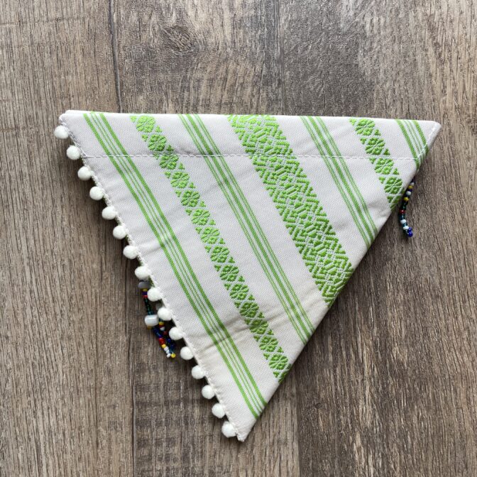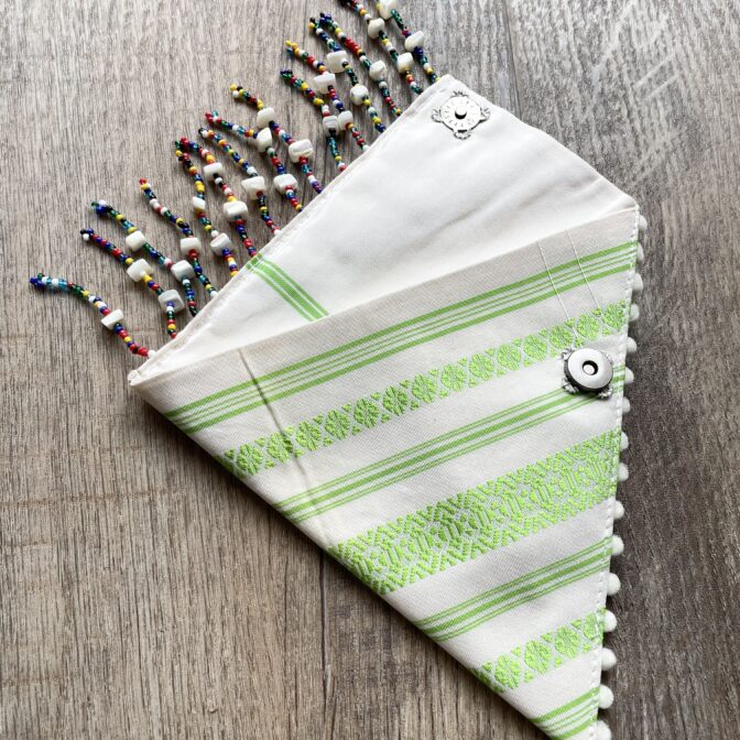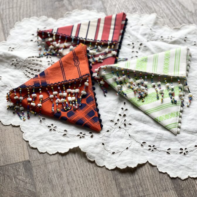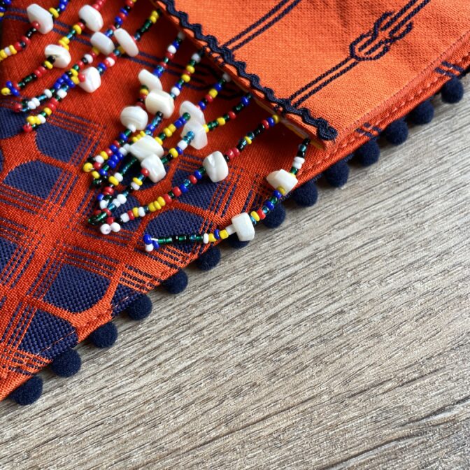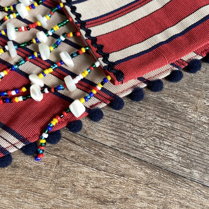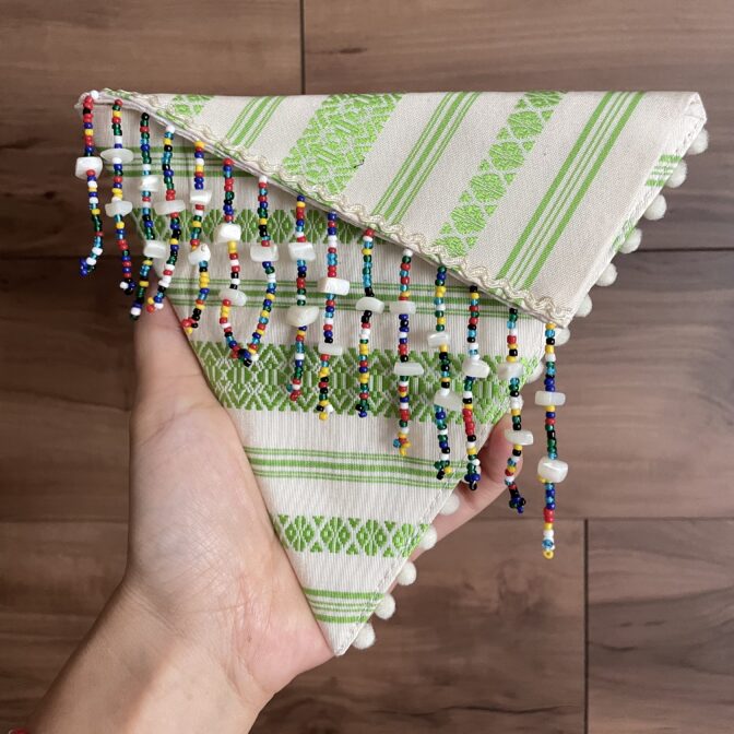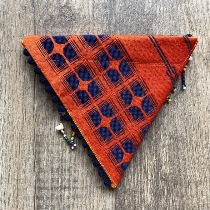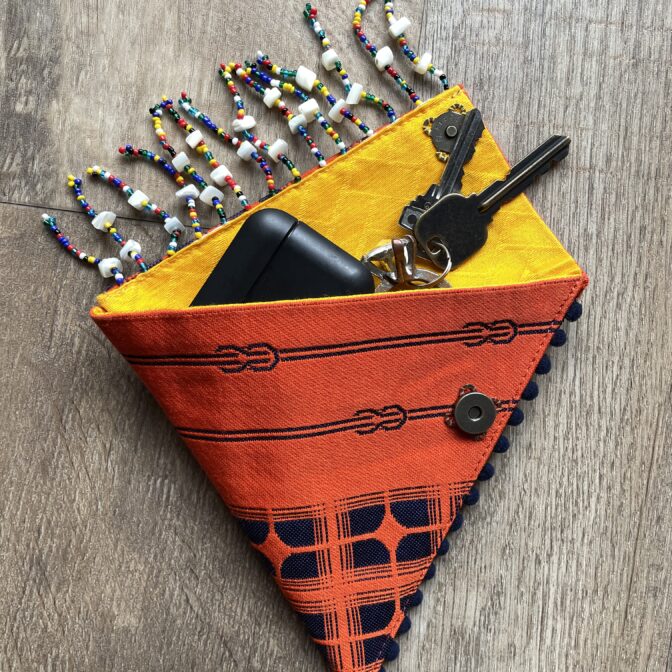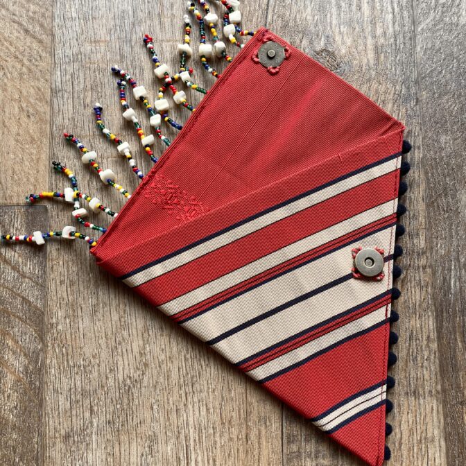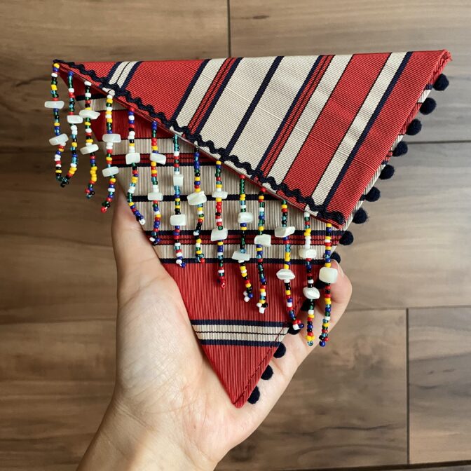 ビーズフリンジがかわいい♡着物帯リメイク☆サンカクポーチ