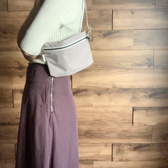 - 軽くて、開閉もしやすくストレスがないです。そのままで肩かけ、長さを調整して腰にと便利。外ポケットがあるし、内側も分かれていて、鍵やスマホを入れるのに重宝しています。